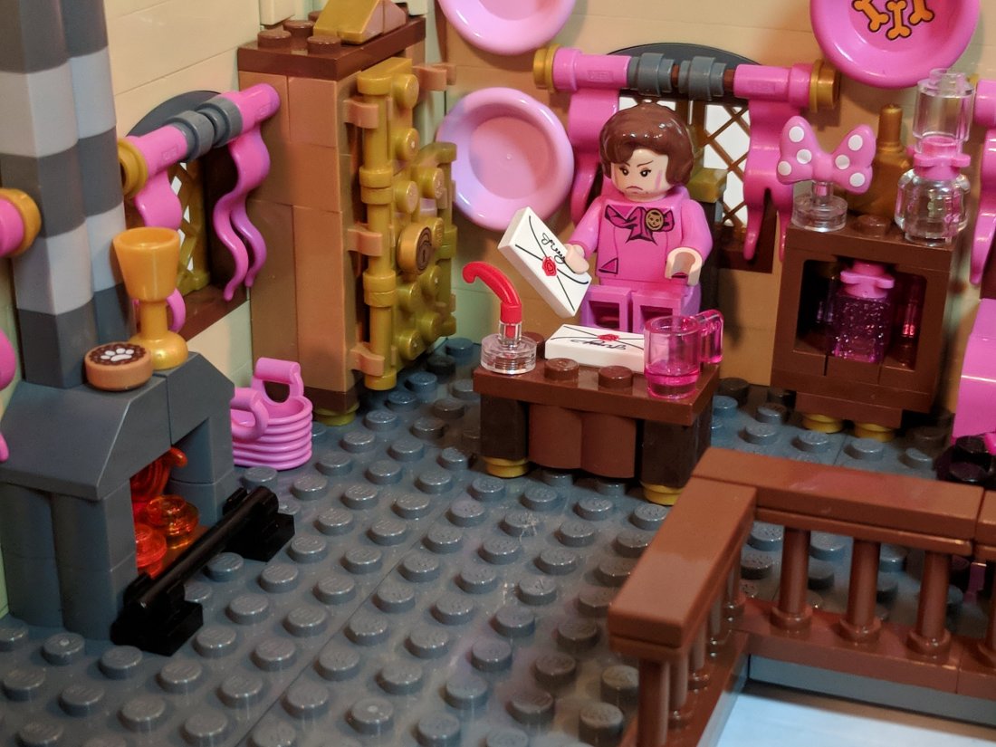 Most of the tower is staircases (and yet unfinished), but the top floor houses the office of the favourite object of hatred: Professor Dolores Umbridge. Apart from a couple of bricks, this is now complete!