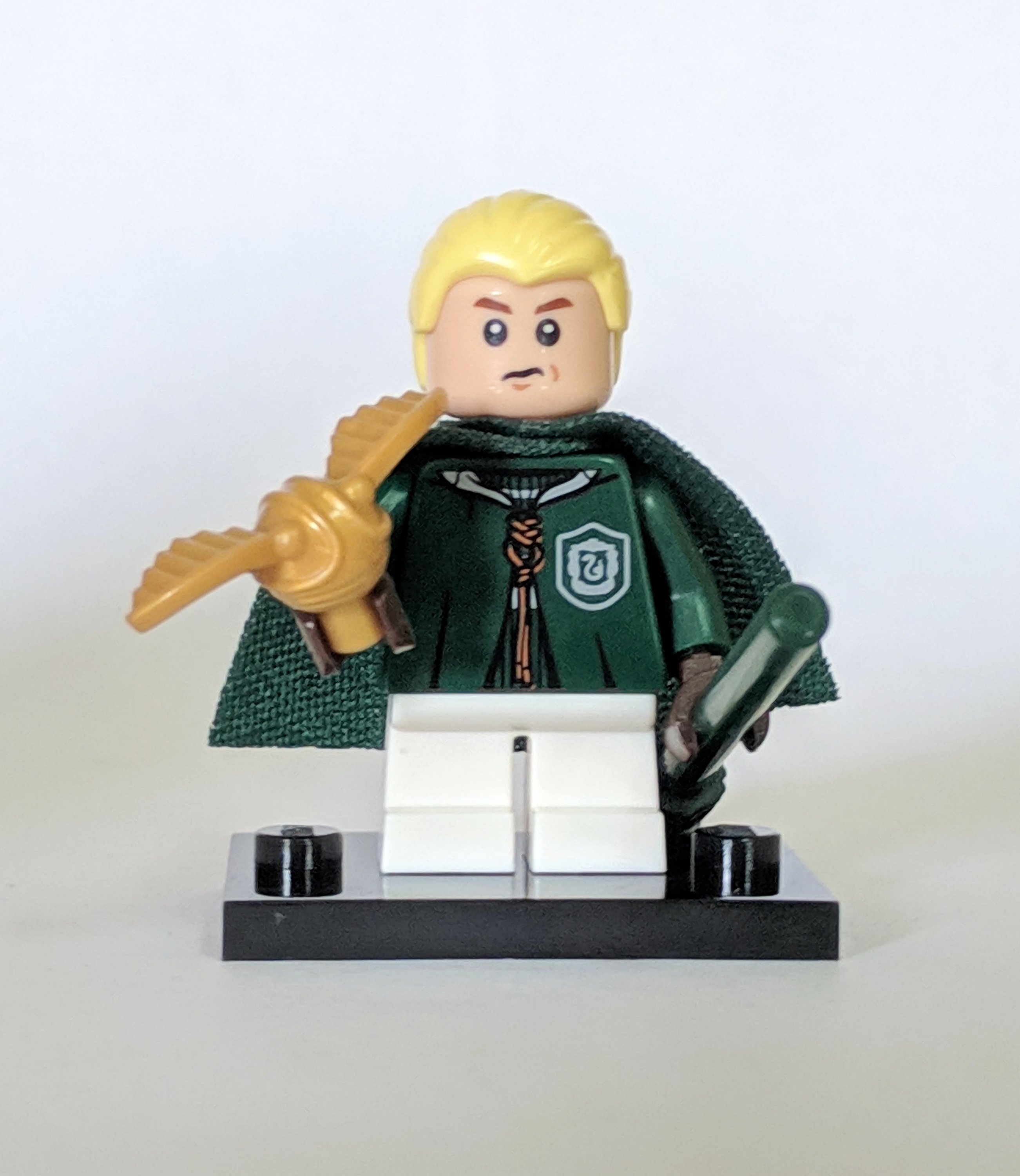 Draco is one of the key characters in the Harry Potter books and the one that has been made into most different Minifigure versions (8 versions came with the sets released between 2001 and 2011) apart from the Gryffindor trio Harry, Ron and Hermione.