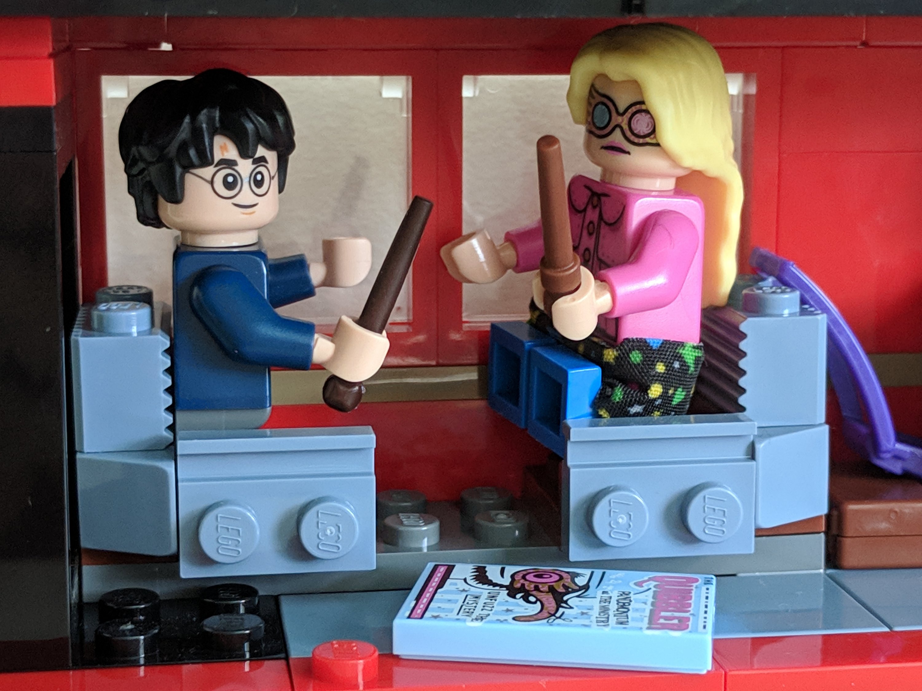 A quick test to recreate the train scene, where Luna is wearing the spectrespecs in the Half-blood Prince, proves that it is hard to have the figure sit down due to the cloth skirt.