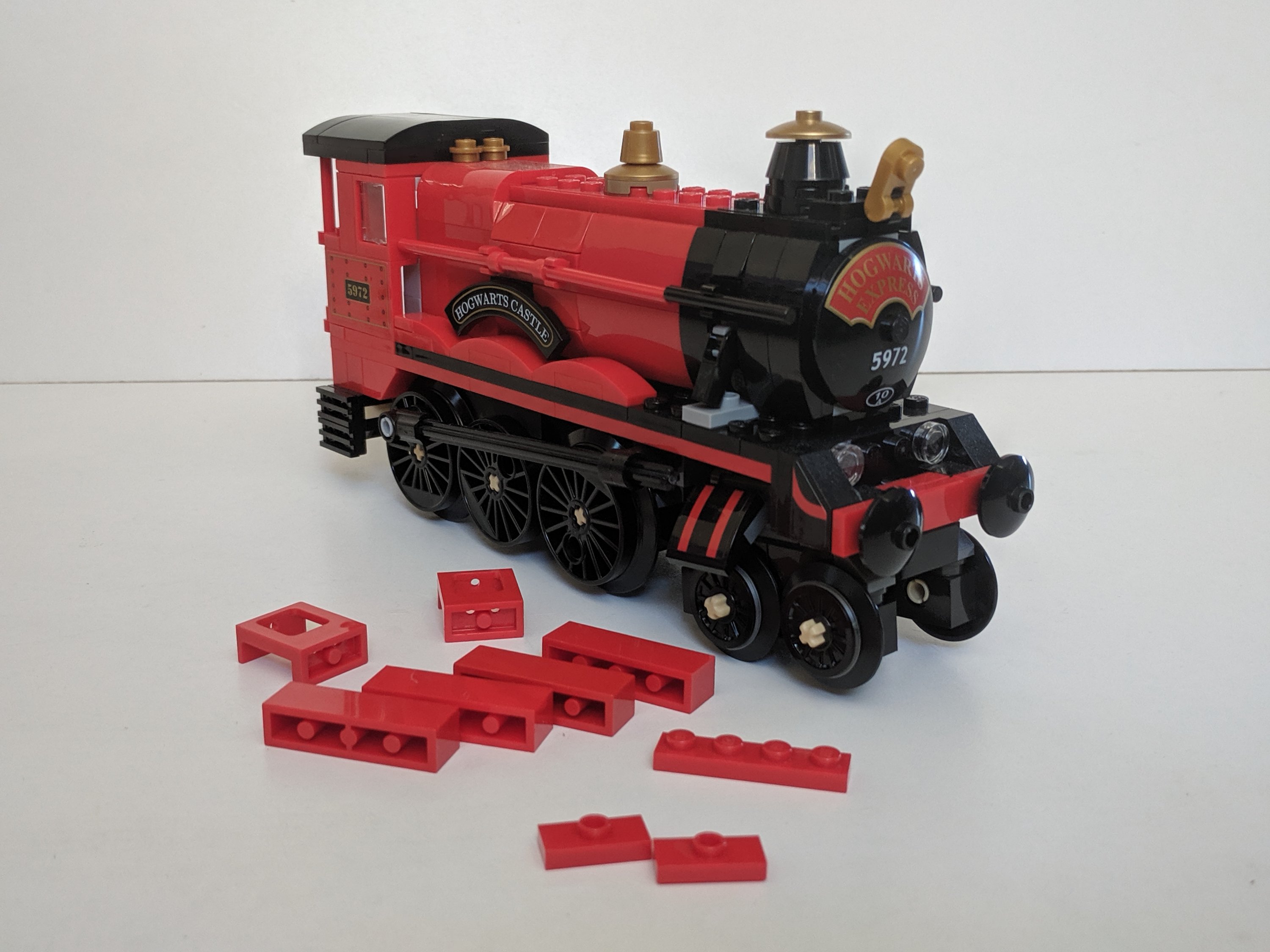 Finally, I replaced the black jumper plates under the curved Hogwarts Express sign with red ones on both sides. I have no idea why they used black as there are plenty of red jumper plates included in the set already.