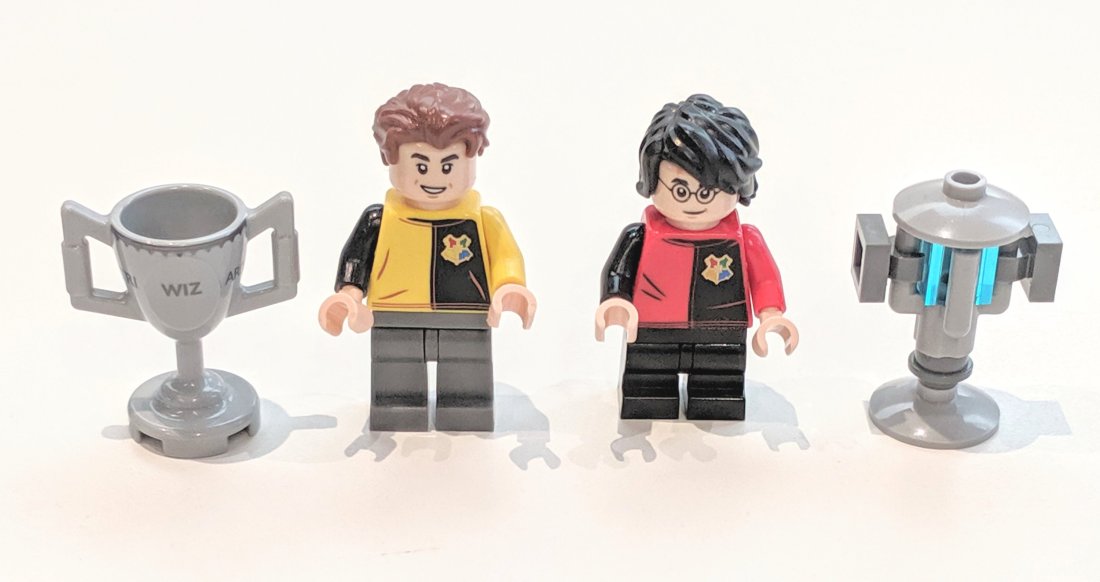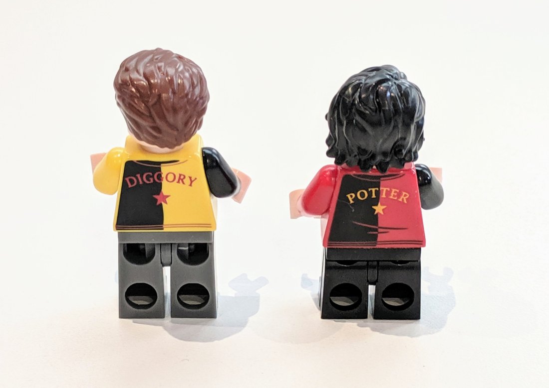 When reviewing this set, it is hard not to have a look at Cedric Diggory from the LEGO Harry Potter CMF series from last year (see the review here). He’s luckily a perfect match to the Potter figure included in this set, in particular when seen from the back with their family names printed as in the movie.