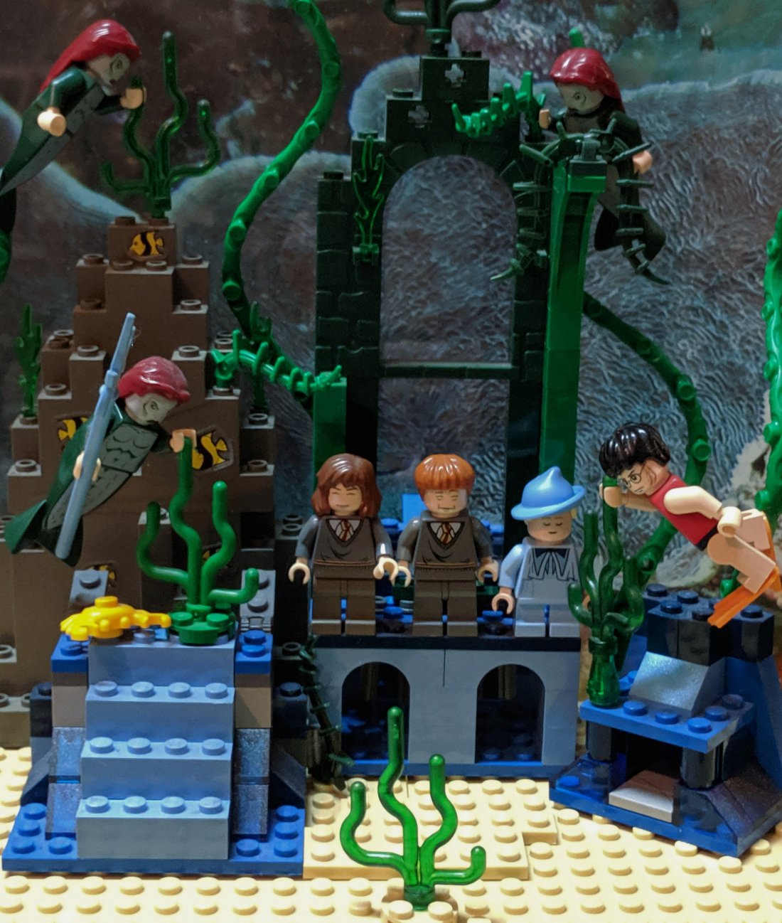It is therefore a great supplement to the Rescue from the Merpeople (set 4762) from 2005, which only included Ron and Hermione (who was to be rescued by Viktor Krum). Here she has been added to a scene based around the 2005 set.