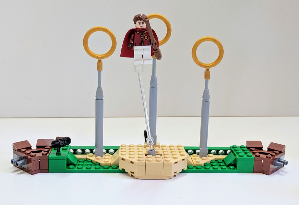 It is an interesting play feature that has not been seen in previous Quidditch sets. Of course, the shooter attachment can be shifted to a Gryffindor broom and a Slytherin can be attached as keeper, so you can take turns to see who will win.