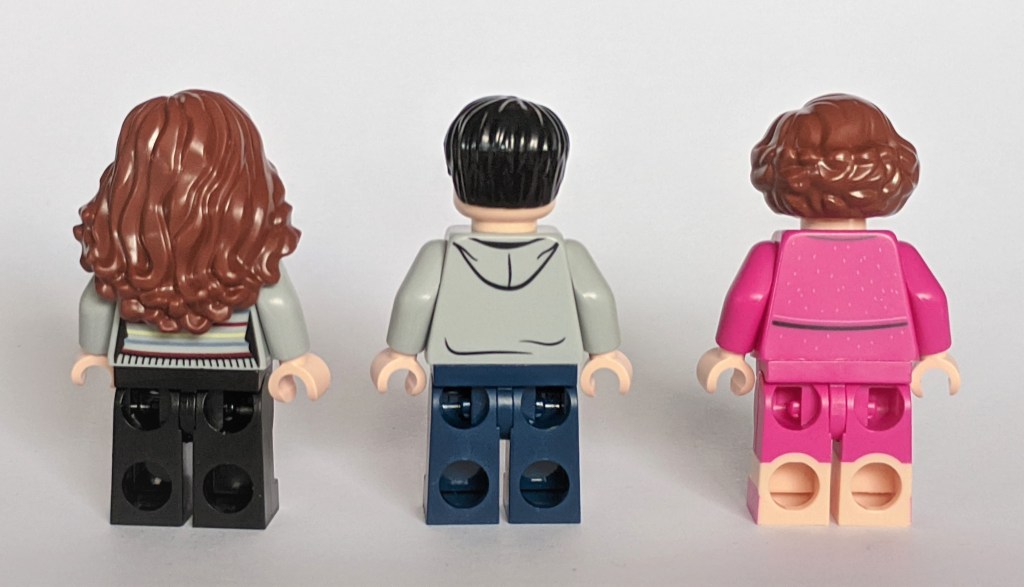 Hermione and Harry come with printed torsos only while the Umbridge minifigure also has printed legs, which completes her dress nicely. The printed faces and included hair pieces are well representing the characters.