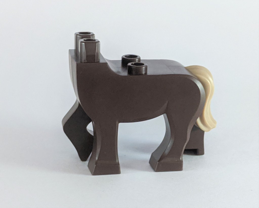The centaurs can be considered “almost” minifigures as they include normal minifigure torsos, heads and hair pieces. What make them special though is the new horse-body piece to which a normal minifigure torso can be attached.