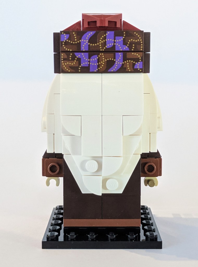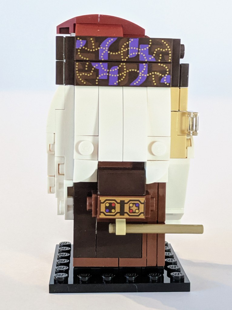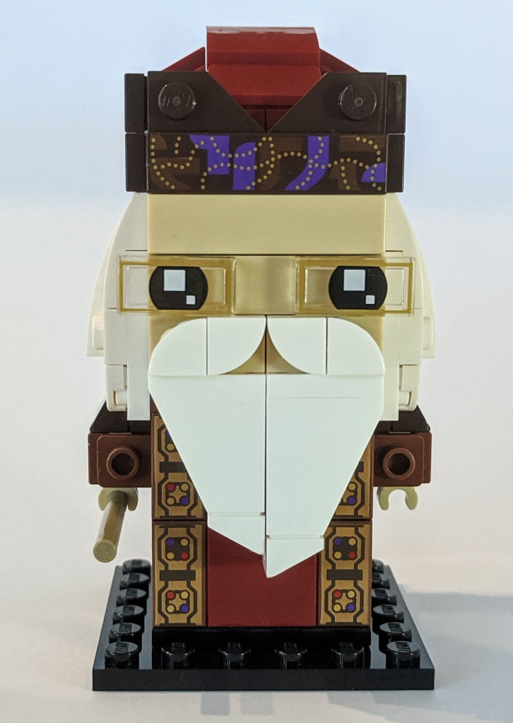While the Harry Potter Brickheadz figure had a set of very dominating glasses, Dumbledore’s glasses are much more subtle, simply being eyes printed along with a frame on transparent 1×2 tiles.