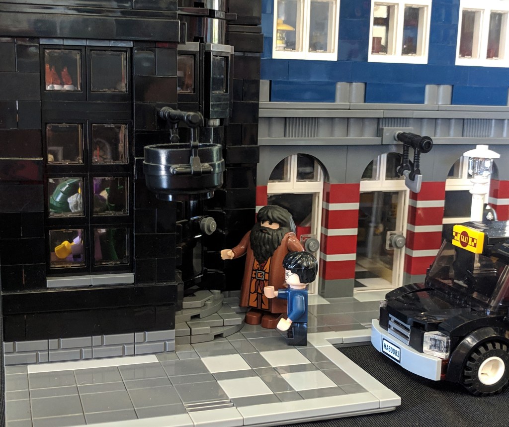 Over the last couple of years, I’ve been working on a large LEGO model of Diagon Alley. It started with a custom model of the Leaky Cauldron and another of the Weasley’s Wizard Wheezes shop. Realising I had two key components of Diagon Alley, I thought, why not build it all (or almost so)? Here is where I got to!