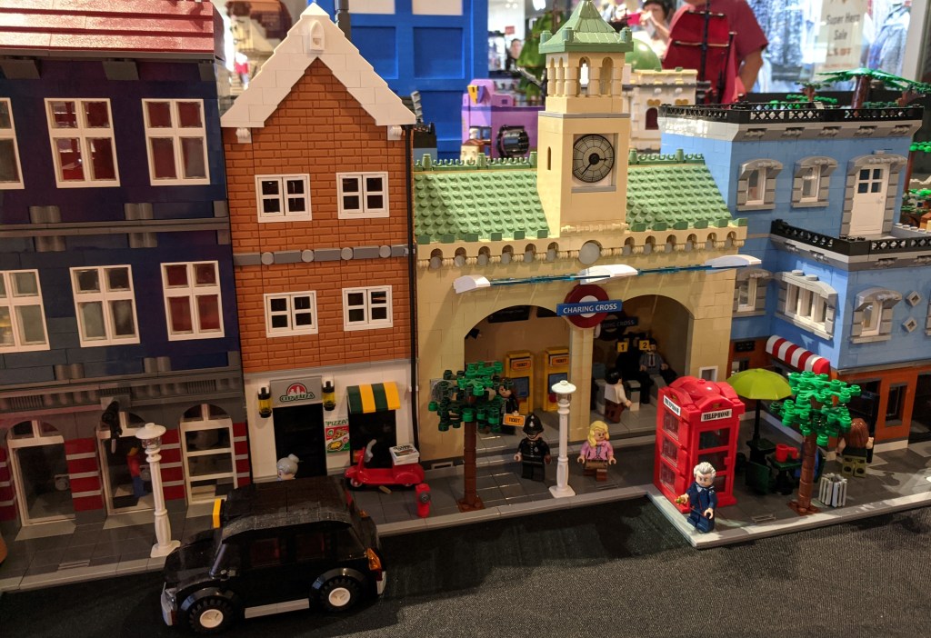The display is currently taking up 3×3 baseplates, with a third of this showing a typical Muggle street in London. To make sure it had the right London feel, I designed and added a traditional London phone booth and a London taxi (instructions for both are available from my Instructions page).