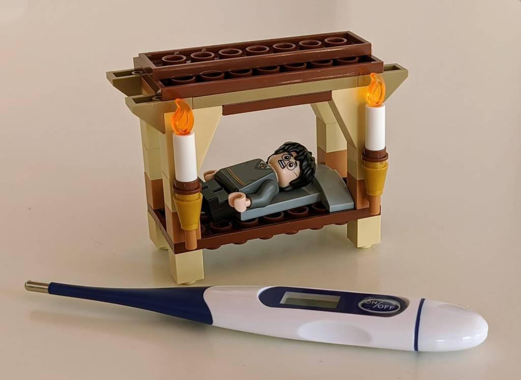 I was following advised I had COVID-19. It didn’t came as a surprise, as I was rather unwell for a couple days. Didn’t feel like doing much, but did build this four poster bed for Harry. He looks sick as well.