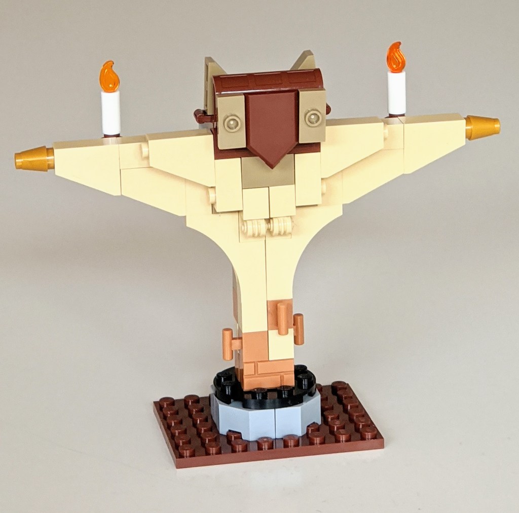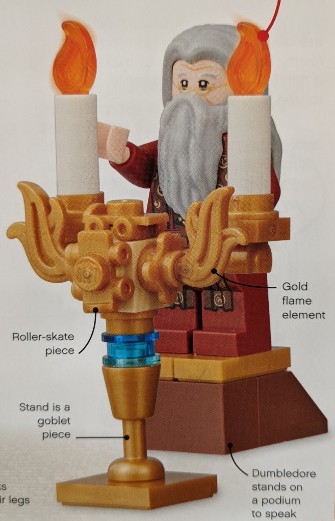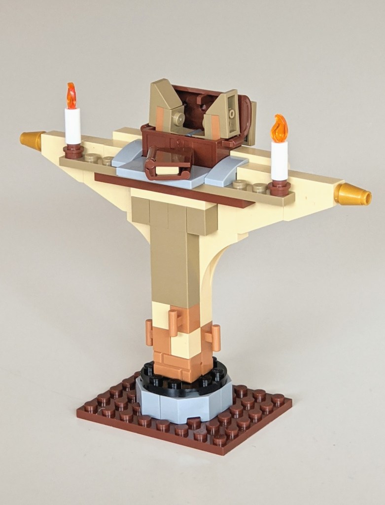 The final model is the one I like the most. It is a larger (i.e. not minifigure scale) model of Dumbledore’s lectern, and I used almost all the pieces for this one, with only a handful remaining unused.
