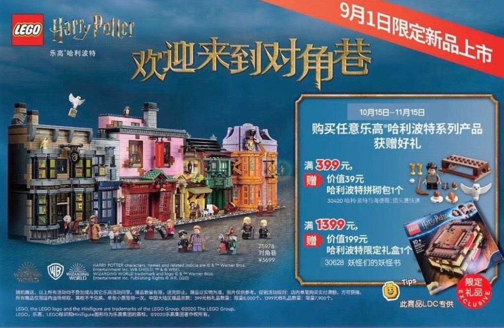 In China, the Shanghai LEGO Discovery Center has sent out a newsletter, revealing this new LEGO Harry Potter GWP set. From the newsletter it is shown that The Monster Book of Monsters (set 30628) will be a gift with purchase when you spend a minimum of 1399元 (approximately US$210) on LEGO Harry Potter products in store from 15 October to 15 November.