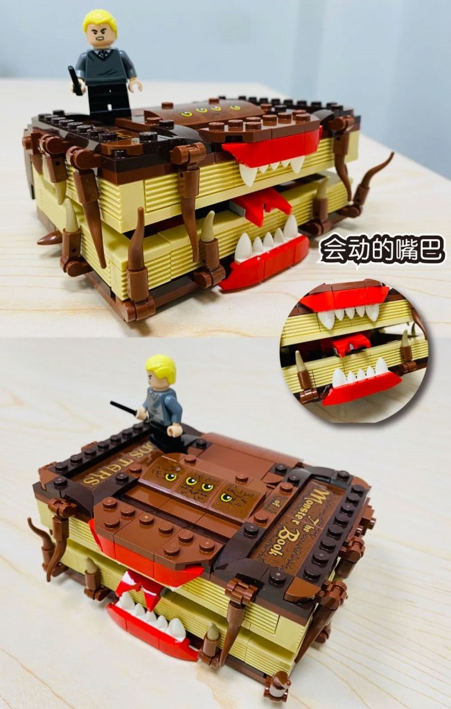 A user on WeChat has got a copy and posted some photos of it there as reproduced below. The first two photos show it from the front and explains that the mouth opens. From the photos, we can see that the book title and the four eyes are from stickers rather than being printed on the bricks.