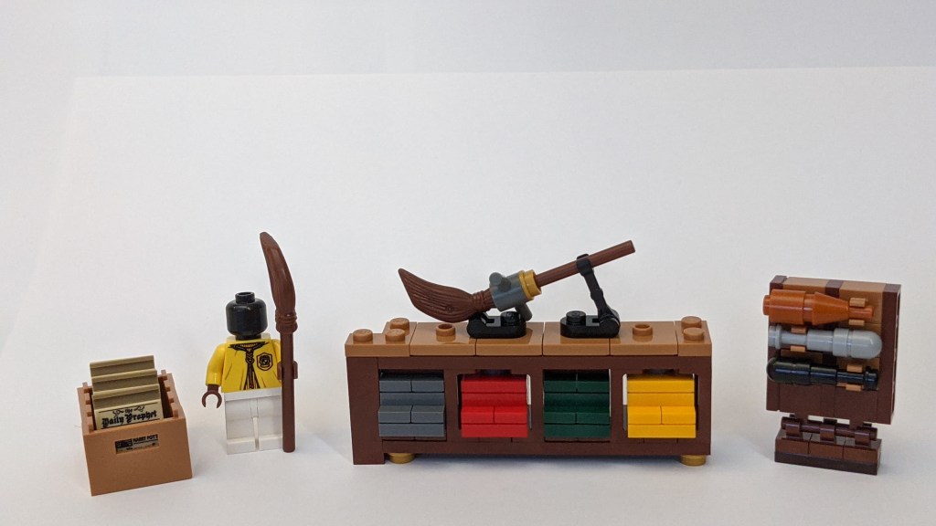 While I have mentioned it in my Roundtable Interview post, one of the really awesome things with the Quidditch shop is the inclusion of the Ravenclaw and Hufflepuff Quidditch uniforms. Marcos Bessa, the lead designer, explained that as a Ravenclaw, he right from the start really wanted their uniform in the Quality Quidditch Supplies – and adding Hufflepuff as well, would ensure all four houses have Quidditch uniforms in their colours. As sets previously have been heavily focused on Gryffindor and Slytherin, I’m sure a lot of Hufflepuffs and Ravenclaws appreciate their inclusion!