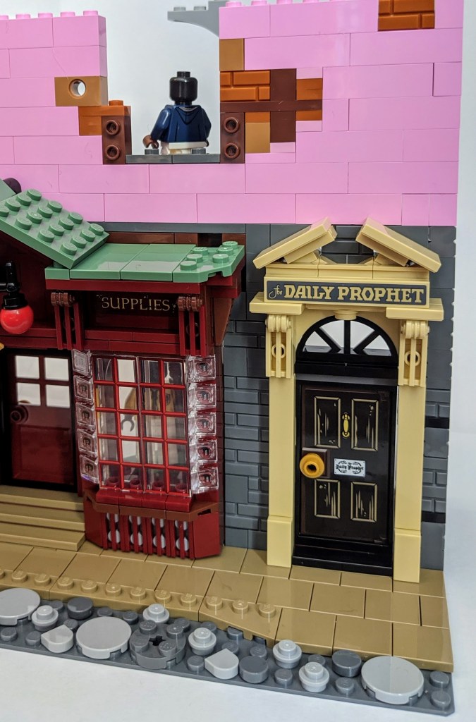 Overall, it was close to as positive an experience as the first submodel. It is still very good, the first one was just really amazing. The build experience was as high as for the first section, but I do get the point raised by many that it is “very pink”. I do like that it adds colour to the build, but maybe a slightly slimmer building (using a different colour above the Daily Prophet) or more patches of different coloured bricks would have toned it down a bit.