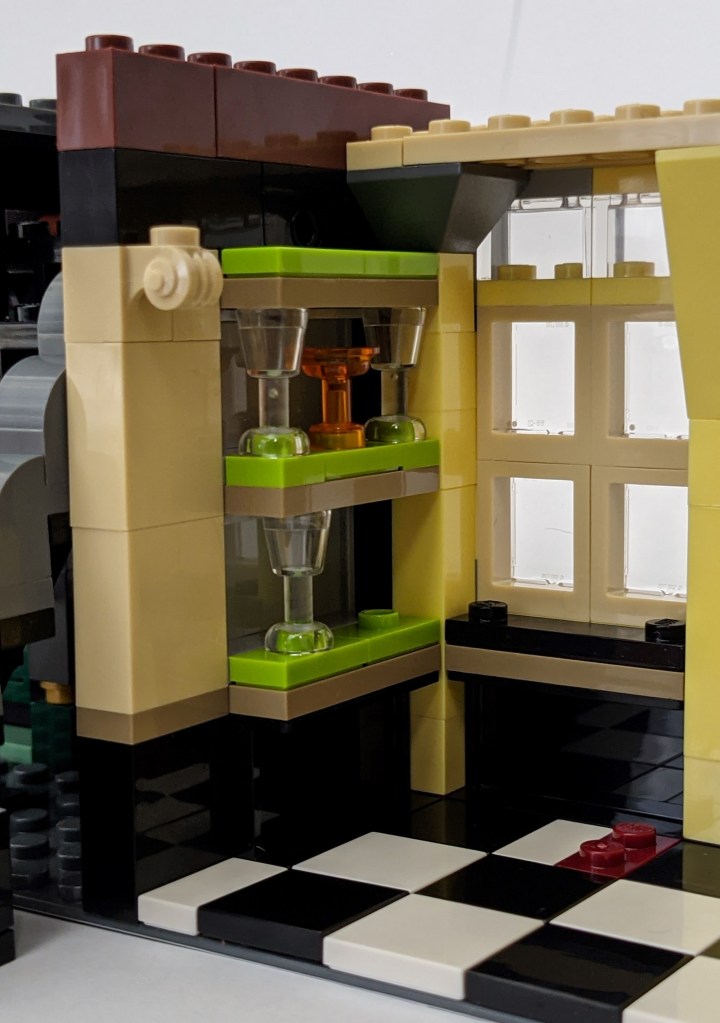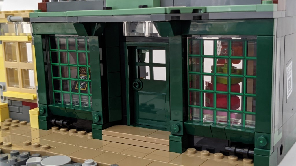 A couple of minor detractions are the multi-coloured sides of the bookshelves and then – as mentioned – I don’t really like the use of the 1x6x5 panels. It detracts from the sides of the buildings. I may rebuild where possible with normal bricks, so it won’t show up regardless of which submodel I decide to put on the end.