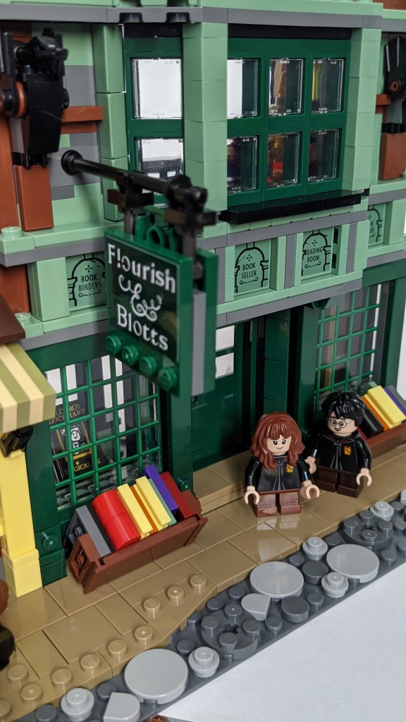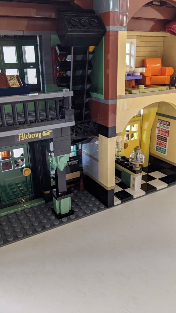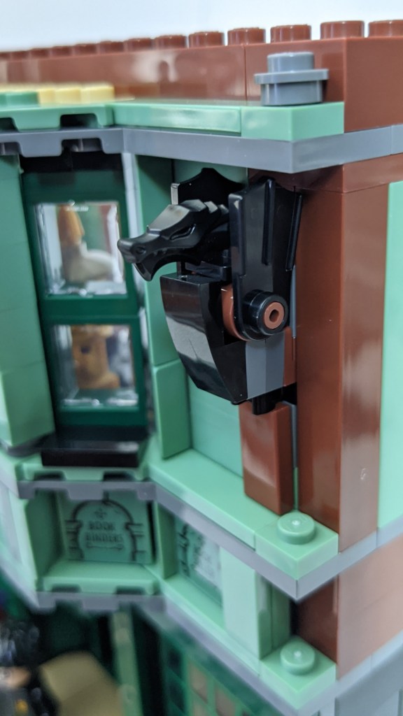 This is quite clever if you have them on display against a wall or similar, where you don’t have room for it extending out. Similarly, we saw that the staircase in Ollivanders (part 1 of the review) could swing to the side to have a level back.