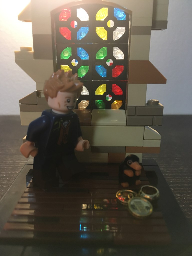 Niffler chasing gold: This vignette by Brody McCarthy deserves a special mention for the stained glass window. And then of course niffler is super-cute, and its is hard not to love a scene with it.