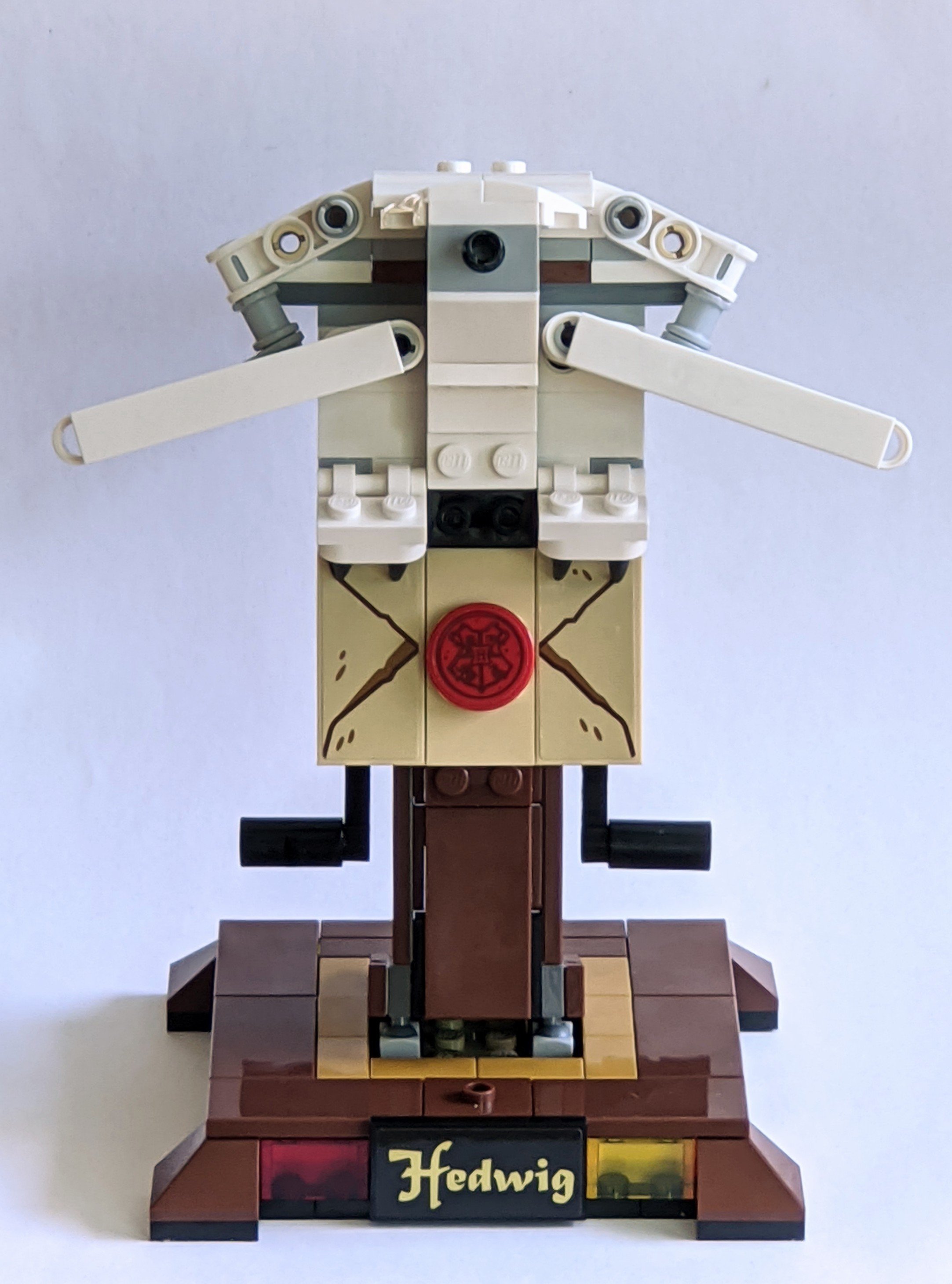 Next up is Hedwig’s body along with the letter the owl is carrying in its claws. This part has a significant amount of SNOT building (stud not on top), but I mostly liked the progression of the mechanism to make the wings flap.