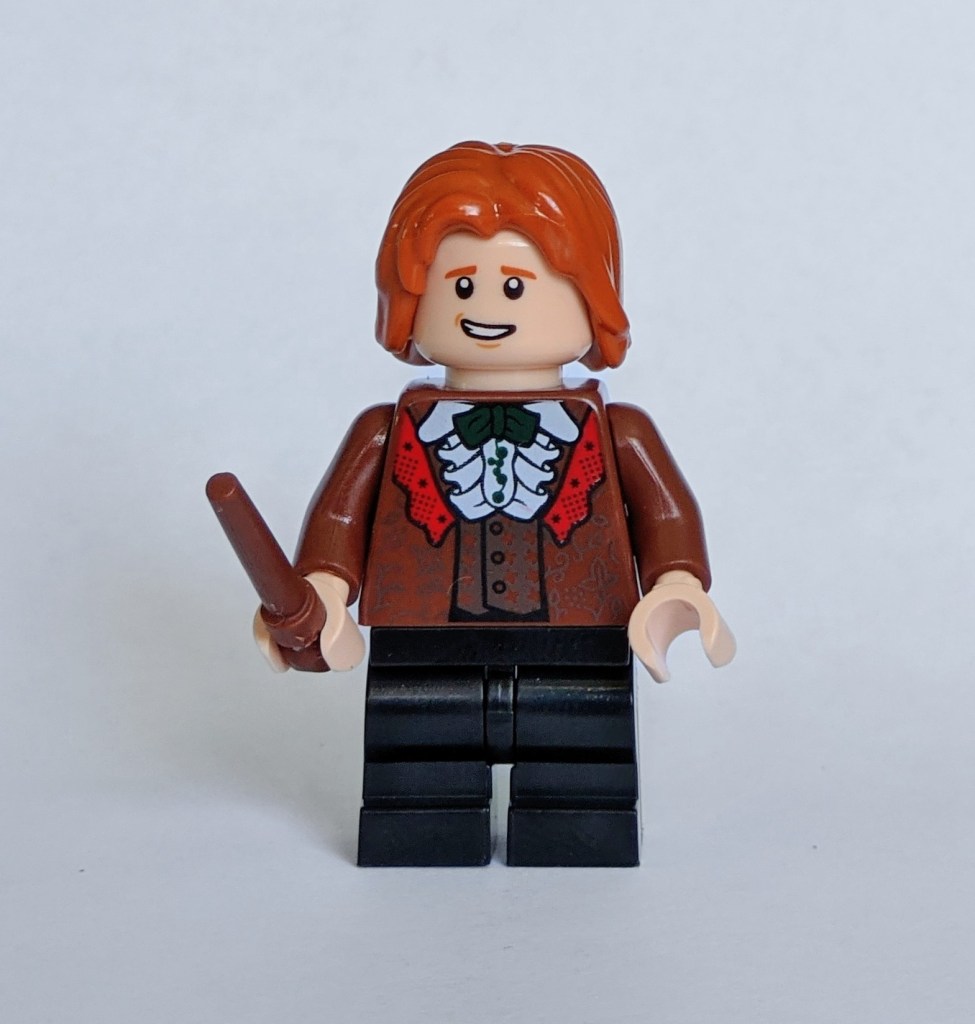From the plastic bag hiding behind door number 10, we get the pieces to build Ron Weasley. Not surprising (as he featured on the front of the calendar) he is in his Yule Ball formal dress – similar to Harry and Cho Chang, who we got earlier. It is however, exactly the same minifigure as the one included in the 2019 Clock Tower set, which may disappoint those who also own that set. He does however come with two sets of two wands! Ron has a tendency to break his wand, so it is good with some extras…