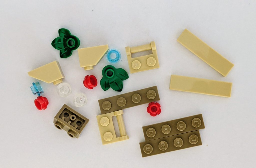 Today’s model is smaller than yesterdays, but the plastic bag still packed a reasonable 19 parts (though 3 of those were spares) to build up the wall/window section.