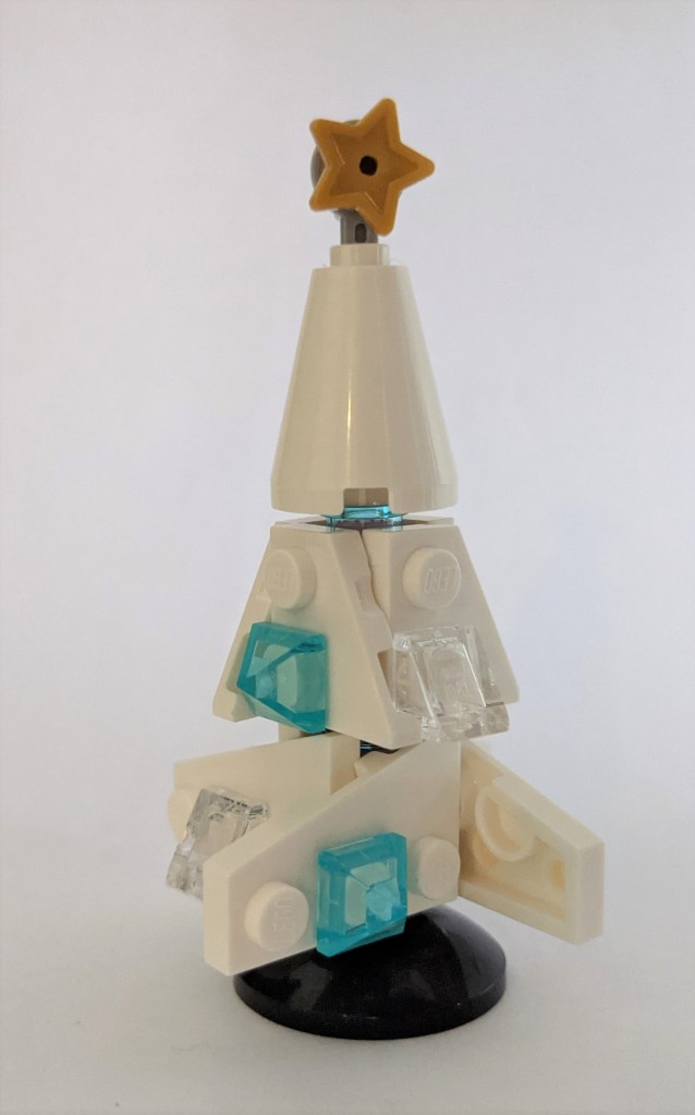 When I pulled the plastic bag from behind the door, I immediately guessed it was going to be a Christmas tree. Just for fun, I had a go at building one with the pieces before looking at the instructions. I built it in a way I was sure was going to be different from the official model. Here is what my tree looked like.