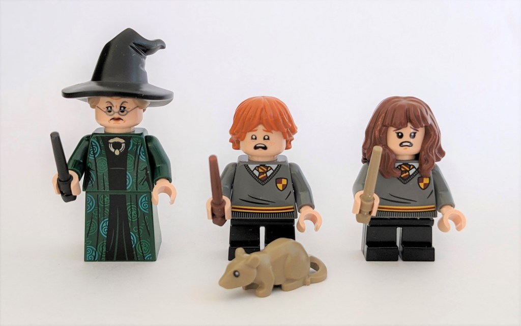 As all other sets in the series, the set includes three figures. In this case we get Professor Minerva McGonagall (Head of Gryffindor), Ron Weasley and Hermione Granger.
