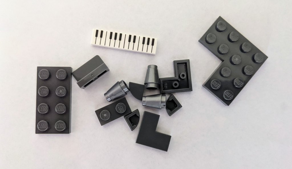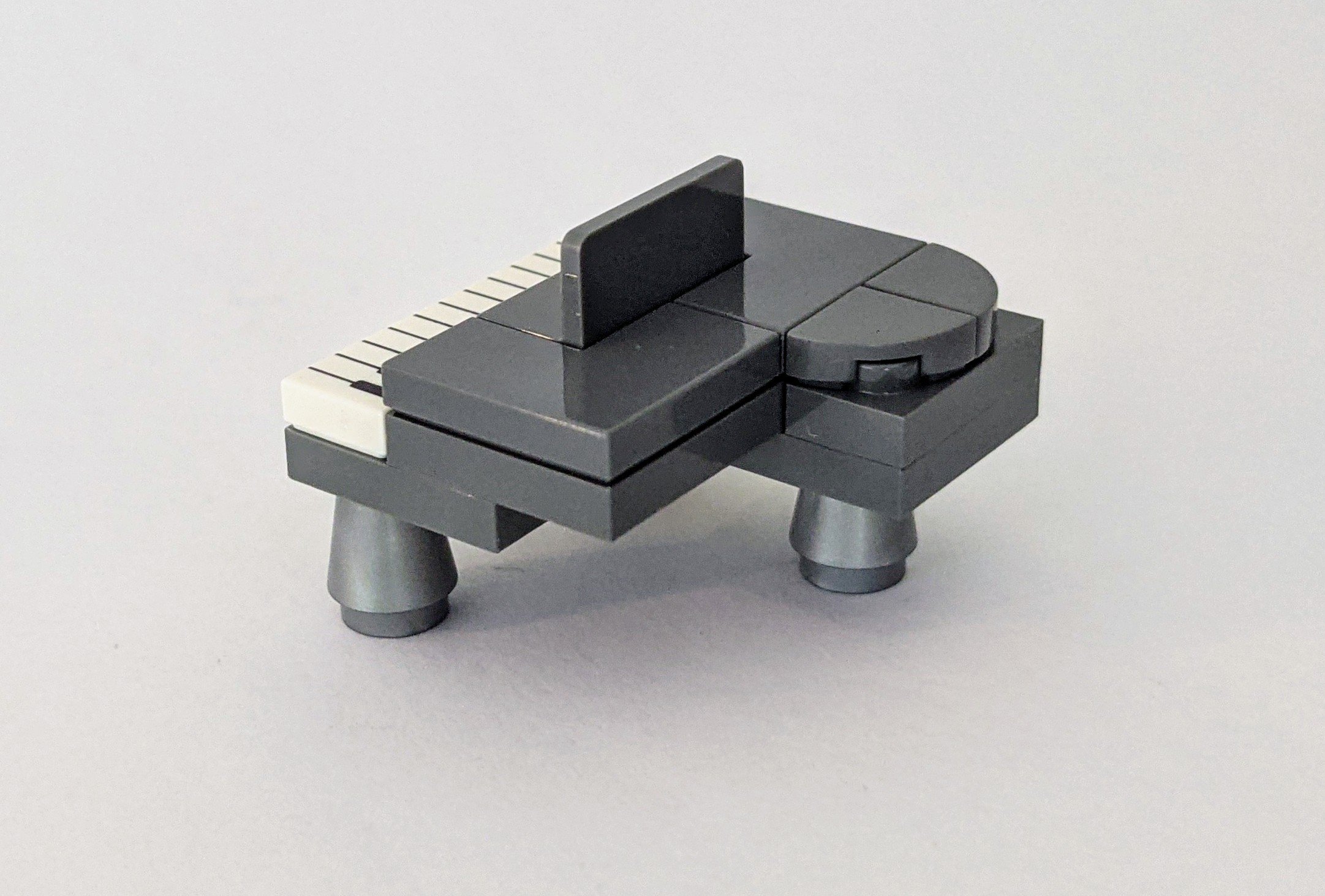 When assembled, you get a grand piano. As such it looks pretty good, though less rounded than optimal from some angles. Adding a few extra parts for a stool would have been good. But the 1×4 printed tile with the keys itself is a useful piece for any music lover.