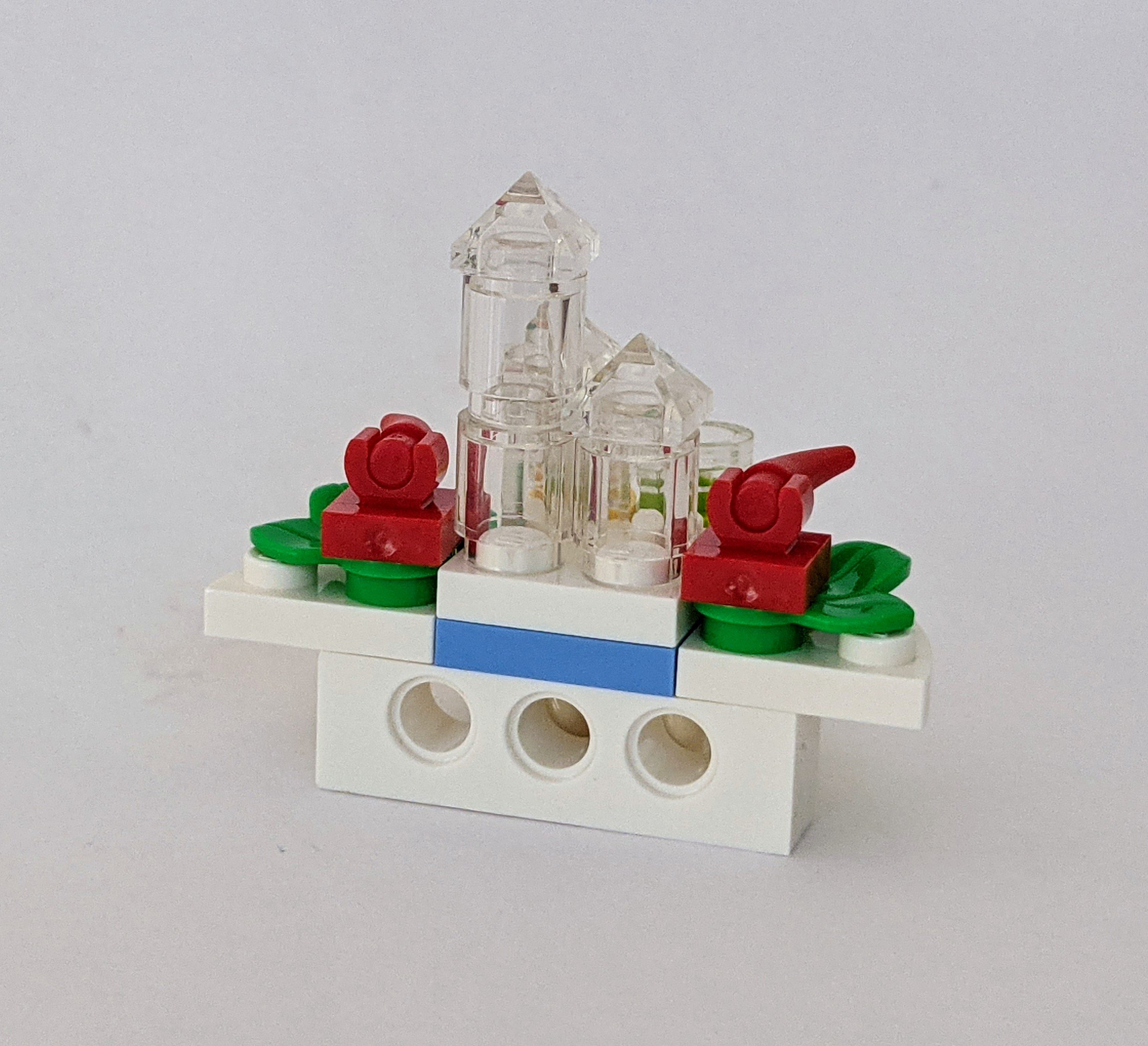 Here I’ve trimmed it down to just the decoration and created a few goblets from spare bricks (as I due to house renovations couldn’t find the box with goblets).