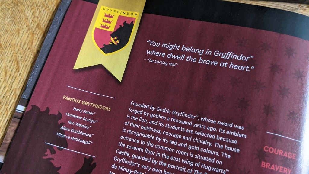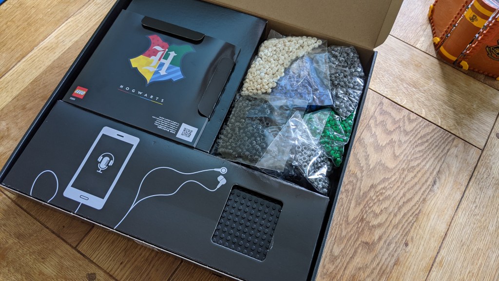 And interestingly, this set comes with a podcast (it is labelled a soundtrack, but it is really a podcast) which complements the building experience well. It lasts about an hour, so it won’t cater for the full build time, and includes roundtable interviews with people who worked on the “arts” side of the Harry Potter movies (such as props) and the LEGO set designer. It is supplemented with sound clips from the movies, including the sorting hat’s discussion with Harry about where to put him. Overall, I liked its focus on the arts side, which was different from what you otherwise usually get exposed to, and fits well with an “arts” set.
