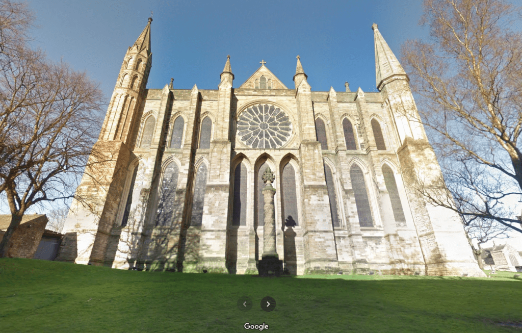Next up – using bags 2 and 3 – is the viaduct entrance. This is a building with a tower at both ends that stands at the end of the viaduct extending from the courtyard in front of the great hall. It is sometimes referred to as the Durham building as apparently inspired by the facade of Durham Cathedral. Below a photo of how it looked at Hogwarts (left) and the facade at Durham.