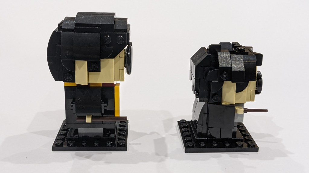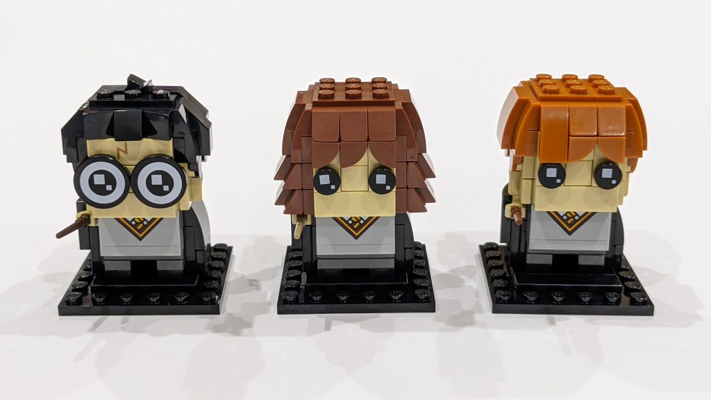 These figures represents the trio in their early years at Hogwarts and to represent their young age, they are accordingly built in smaller scale than the usual Brickheadz characters, with the torso and heads being formed by a 3×3 square.