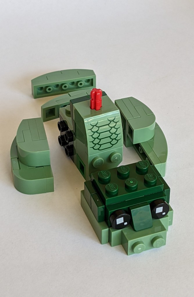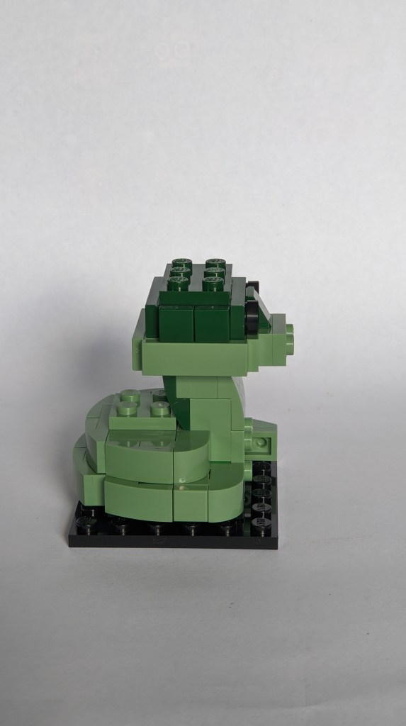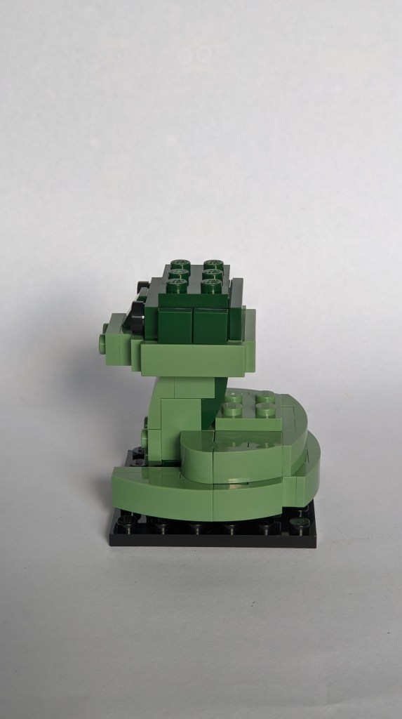 Moving on to Nagini, it is a smaller build, similar in scale to Hedwig from the 2018 Brickheadz sets (3×3 studs head). This model is totally different from the other two and I really liked building this one. Here are a few photos of the build.