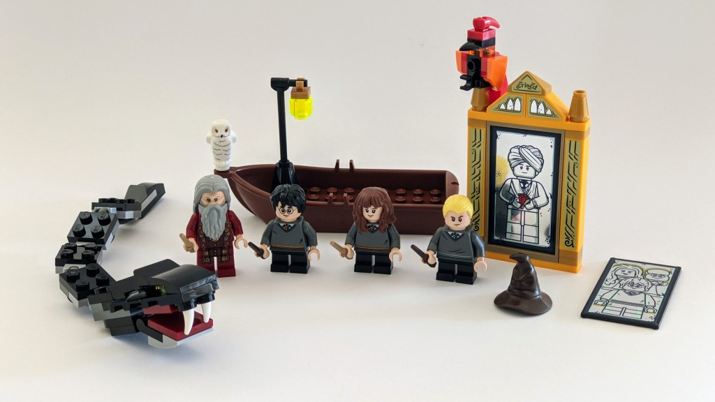The first bag of parts is used to build various minifigures, accessories and two magical creatures – Fawkes the phoenix and the basilisk from the Chamber of Secrets.