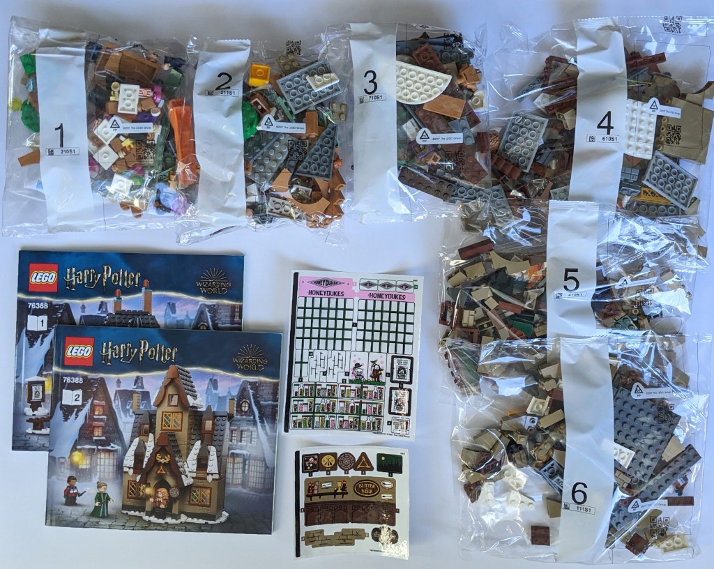 As mentioned, the set includes two buildings, Honeydukes and The Three Broomsticks. Each are made from three numbered bags. First up is Honeydukes…