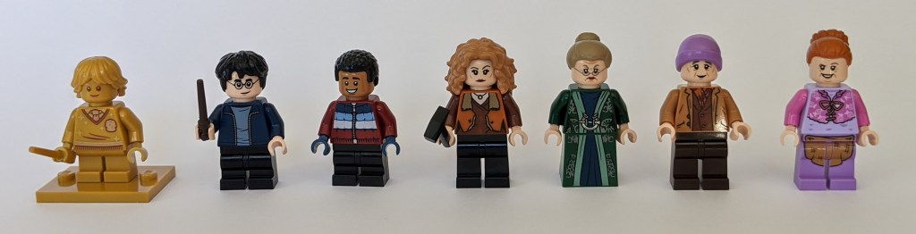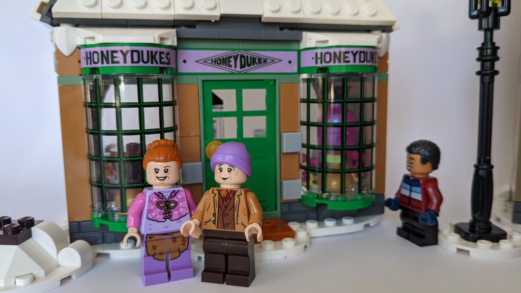 While Harry Potter, Dean Thomas and Professor McGonagall are well known in the LEGO Harry Potter universe, the other three are worth an introduction. They are residents of Hogsmeade, with Madam Rosmerta being the barmaid at the Three Broomsticks, and for Honeydukes, we get the owners Mr. Flume and Mrs. Flume. It is the first time we see these three characters in a LEGO set.