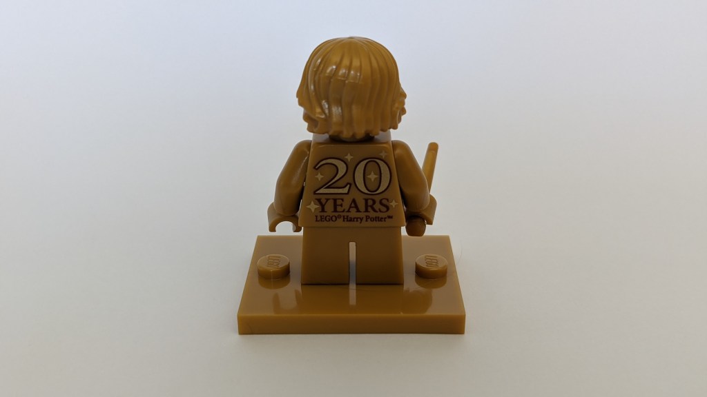 In addition to those six, we get an exclusive golden anniversary Ron Weasley minifigure along with four random wizard cards, which are explained in this post. The anniversary figures unfortunately don’t come with a printed stand as we have seen it for Ninjago and Star Wars anniversary figures. Instead the anniversary print is on the back – not very useful, as figures rarely are displayed with the back facing forward. That said, I really like the golden figures in these sets.