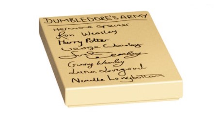 Along with the four characters in the pack, we get a printed tile listing the members of Dumbledore’s Army and a small table with magical items from the movies.