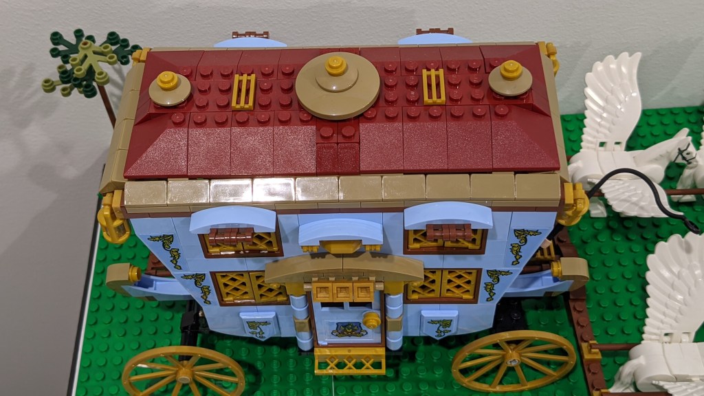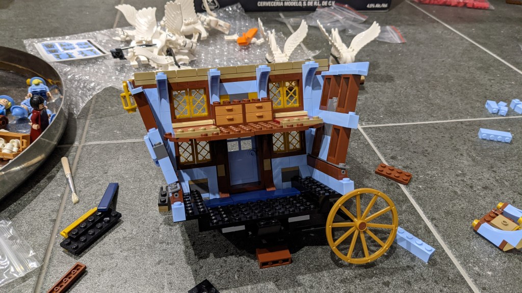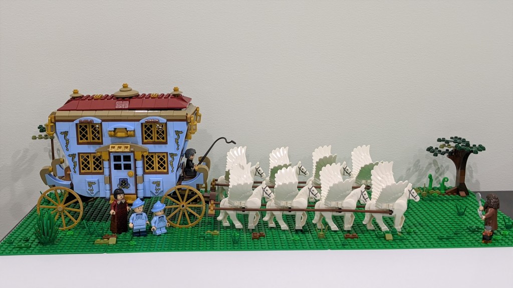 A LEGO set is typically a trade-off between price and size. Creating an accurate model of Beauxbatons’ carriage, with its huge size and a dozen winged horses pulling it, would have been an expensive set. Given the limited screen time it had in the movies, it is understandable that the 2019 Beauxbatons’ carriage set was somewhat moderate in size (though still not at all cheap). For a while, I have worked on creating a bigger version and finally, it is ready to to be shown…