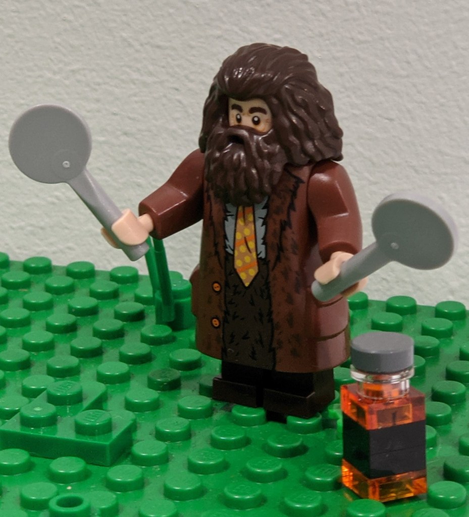 So next to Hagrid, I’ve added a brick built bottle of single malt whisky. Now he can feed the horses. I’ll take any leftovers myself.