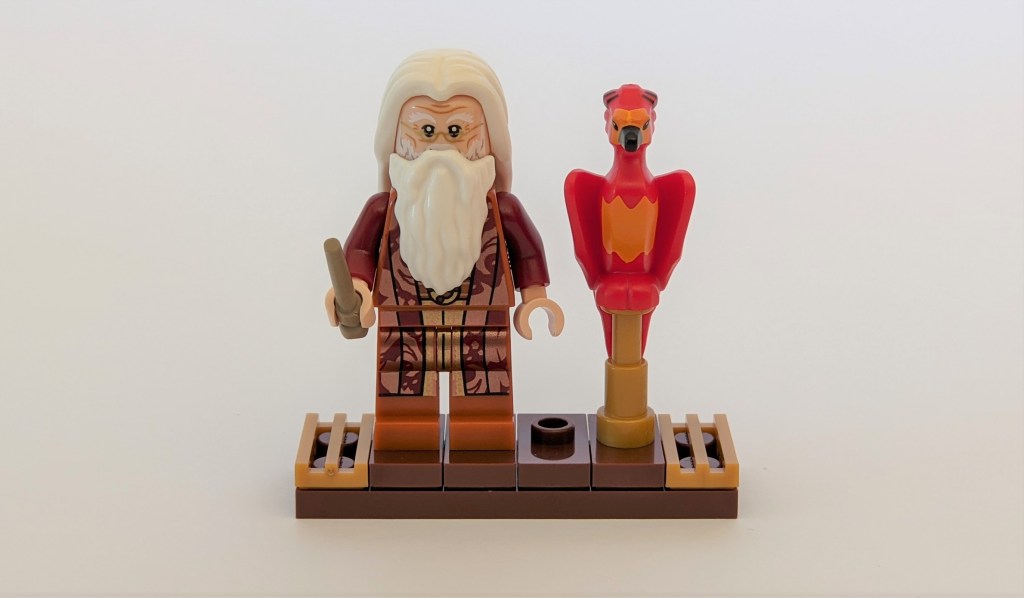 Starting with the latter, this excellent model of Fawkes has appeared once before, in the Harry Potter Collectable Minifigure Series 2. Dumbledore himself is however a new representation of the character, with new printed torso and legs. A such, it is a nice model, though when viewing it from the side, the unprinted dark orange side of the torso and legs does detract.