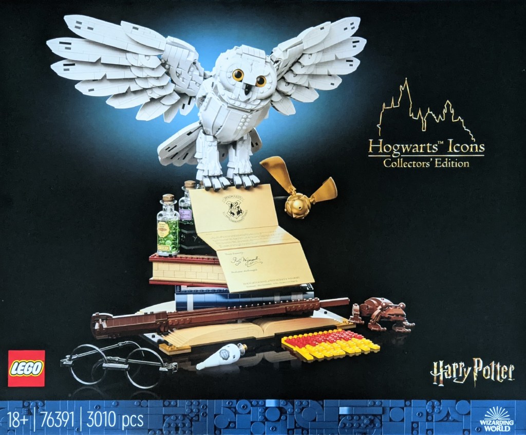 With 3010 pieces, this is actually only the second largest Harry Potter set released in 2021 – as the Hogwarts Crest Wall Art set from January had more than 4000 pieces (though mostly small 1×1 round plates). By weight, Hogwarts Icons would however by far be the largest 2021 LEGO Harry Potter set.