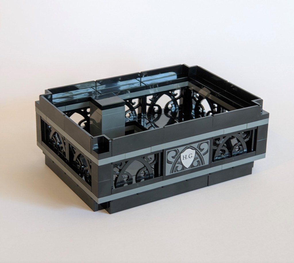 Next up is the potion box. It is black with the initials H.G. written on it (printed tile). The box sits on top of the books and covers most of the still visible parts of the centre core.