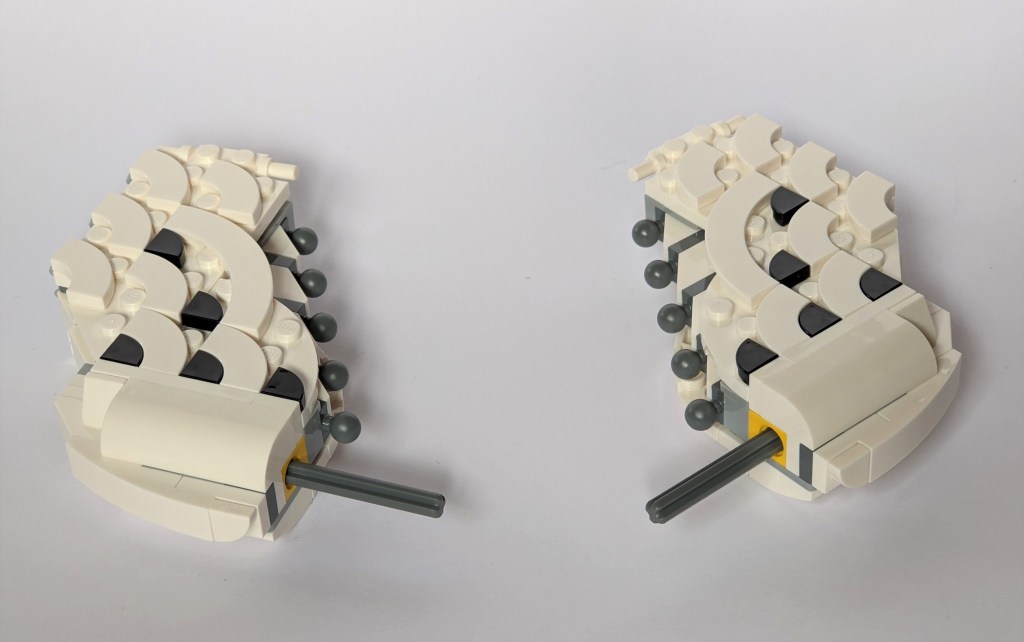 As shown in the instructions, you can actually build two different scarf ends, as only the grey and yellow parts are used for two different models.