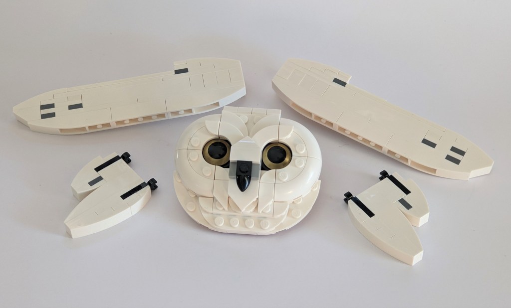 The next bag gives us Hedwig’s face and feathers for the wings.