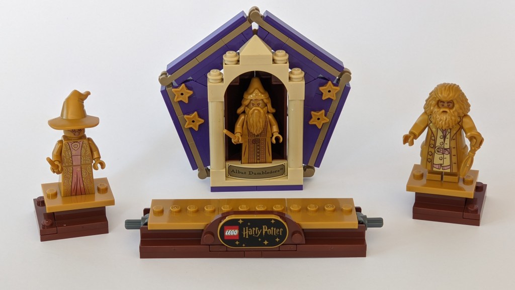 The three minifigures complement the 6 figures we have got from earlier 20th Anniversary of LEGO Harry Potter sets well – and the set luckily includes two extension pieces for the stand to allow you to add any others of the golden figures you may have.