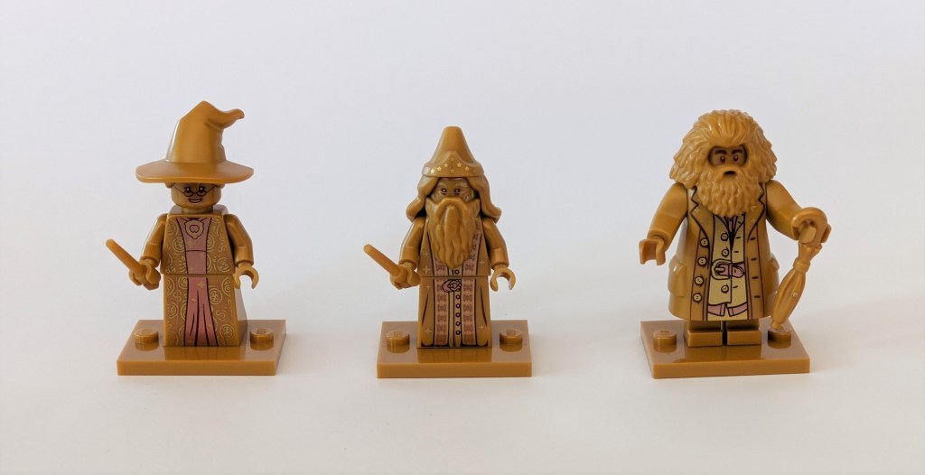 The set adds three more golden anniversary minifigures to your collection: Professor McGonagall, Professor Dumbledore and Hagrid, the Gamekeeper and Keeper of Keys and Grounds of Hogwarts.