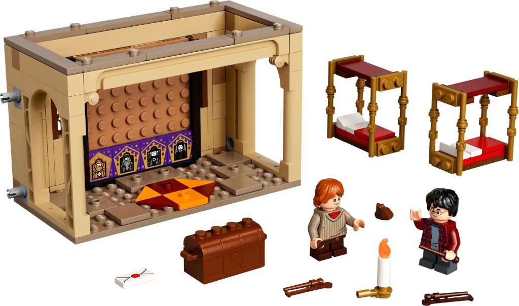 As reported by Brickset, images of the upcoming Harry Potter themed gift with purchase (GWP) set have surfaced on LEGO.com. It features the Gryffindor boys dormitory. As the first decent representation of this room in LEGO, it is a nice addition to the 2021 Hogwarts modular system. Here’s what you’ll get…