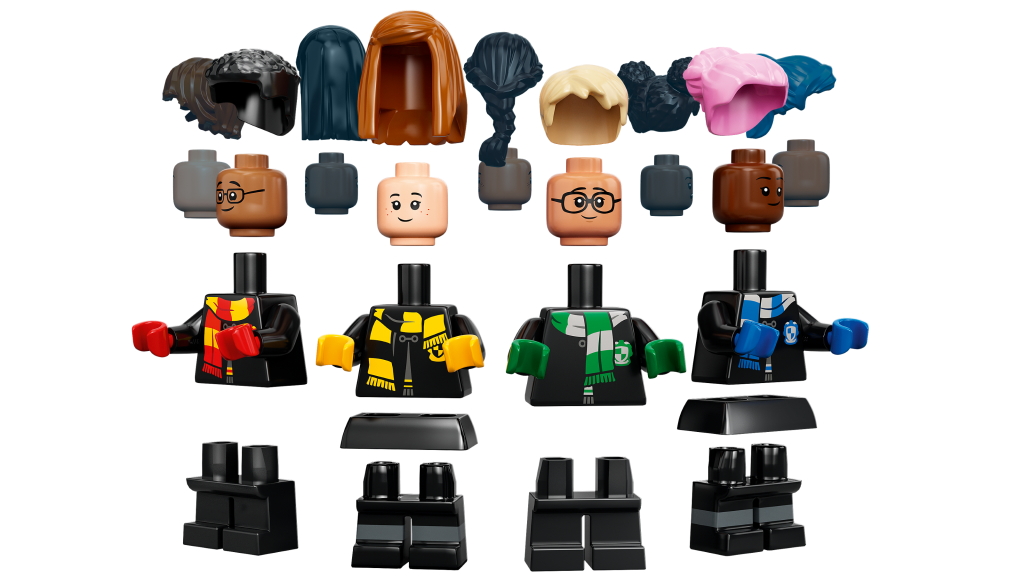 Finally, diversity and inclusion has been promoted strongly by LEGO recently, and this can be seen in this set as well. The set includes a number of different coloured headpieces, with and without glasses, and hairs in many different colours too – including blue and pink. As result, this is a great set to build figures representing different ethnicities, genders, etc and thus creating generic students – rather than just getting more versions of “the usual suspects”, though it appears you can build Harry Potter, Hermione and Draco at least from the various minifigure pieces included.