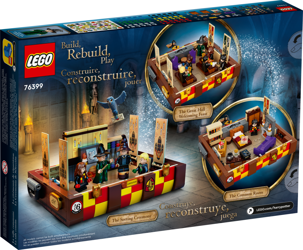 Coming 1 March 2022, Hogwarts Magical Trunk is a quite different set. It will look well as display item, along with other recent sets such as Fawkes and Hogwarts Icons. It is highly customisable with the ability to make the trunk match your personal Hogwarts house, and with a sticker sheet to help decorate it. It also a playset though – somewhat similar to Newt Scamander’s Suitecase from 2019, and the buildable Hogwarts Moments books we got in January 2021.