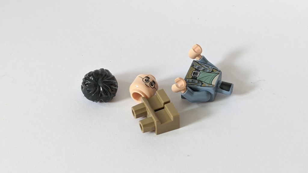 This is a rather unique figure. It is almost identical to the “secret” figure included in 2020 Diagon Alley set, though the head piece is generic rather than having the “floo powder mistake” face on one side as the one in the Diagon Alley set. It is good I think, they keep certain things exclusive.